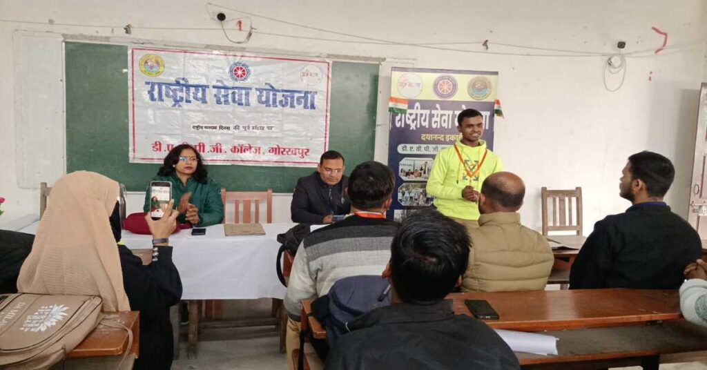 गोरखपुर। डीएवी पीजी कॉलेज, गोरखपुर में राष्ट्रीय सेवा योजना (एनएसएस) के ओर से सनिचर के ‘उत्तर प्रदेश स्थापना दिवस’ मनावल गइल। एह अवसर पs एगो संगोष्ठी के आयोजन कइल गइल, जवना में स्वयंसेवक उत्तर प्रदेश के विकास में नवहन के भूमिका आ प्रदेश के सामने खड़ा मवजूदा चुनौतियन जइसन विषयन पs आपन-आपन विचार रखल लाेग।