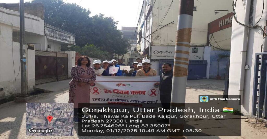 गोरखपुर। डीएवी पीजी कॉलेज, गोरखपुर में राष्ट्रीय सेवा योजना, दयानंद इकाई आ रेड रिबन के संयुक्त तत्वावधान में प्राचार्य प्रो. शैल पांडे आ कार्यक्रम अधिकारी प्रतिभा गुप्ता के नेतृत्व में विश्व एड्स दिवस पs जागरूकता अभियान चलावल गइल। एह अवसर पs सब स्वयंसेवक आ स्वयं सेविका दीवान बाजार आ बक्शीपुर के आसपास के क्षेत्र में रैली निकालल गइल।