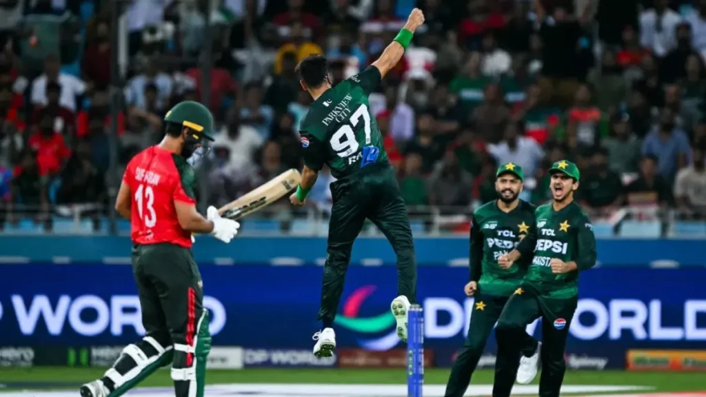 बल्लेबाजी खातिर मुश्किल पिच पs बांग्लादेश के गेंदबाज पाकिस्तान के परेसान कइल लोग। तस्कीन अहमद तीन विकेट (28 रन पs) लेके पाक बल्लेबाजी के झकझोर देलें। रिशाद हुसैन आ महेदी हसन दू-दू विकेट चटकावल लोग। पाकिस्तान 49 रन पर पांच विकेट गंवा के जूझत रहे। बाद में मोहम्मद हारिस (31), अफरीदी (19) आ नवाज (25) के ताबड़तोड़ पारी टीम के सम्मानजनक स्कोर तक ले गइल।