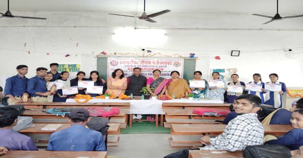 गोरखपुर। डीएवी पीजी कॉलेज, गोरखपुर में सनिचर के राष्ट्रीय सेवा योजना (NSS) के सात दिन के विशेष शिविर के समापन समारोह आयोजित भइल। कार्यक्रम के सुरुआत दीप प्रज्वलन आ सरस्वती वंदना से भइल। महाविद्यालय के प्राचार्य प्रो. शैल पांडे अतिथियन के स्वागत कइली।