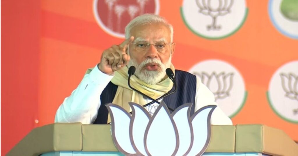 प्रधानमंत्री कहलें कि पहिला- राज्य में भारतीय जनता पार्टी आ एनडीए सरकार के हैट्रिक तय बा। दूसरका- दिल्ली में बइठल “शाही परिवार” अबकि बेर अपना हार के सेंचुरी पूरा करी आ एमे असम के जनता के अहम भूमिका रही।